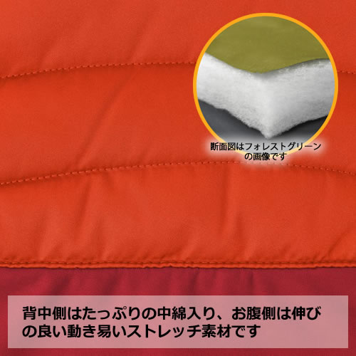 背側はダウンの様な中綿入り素材で様々な天候から愛犬を守り、保温してくれます。