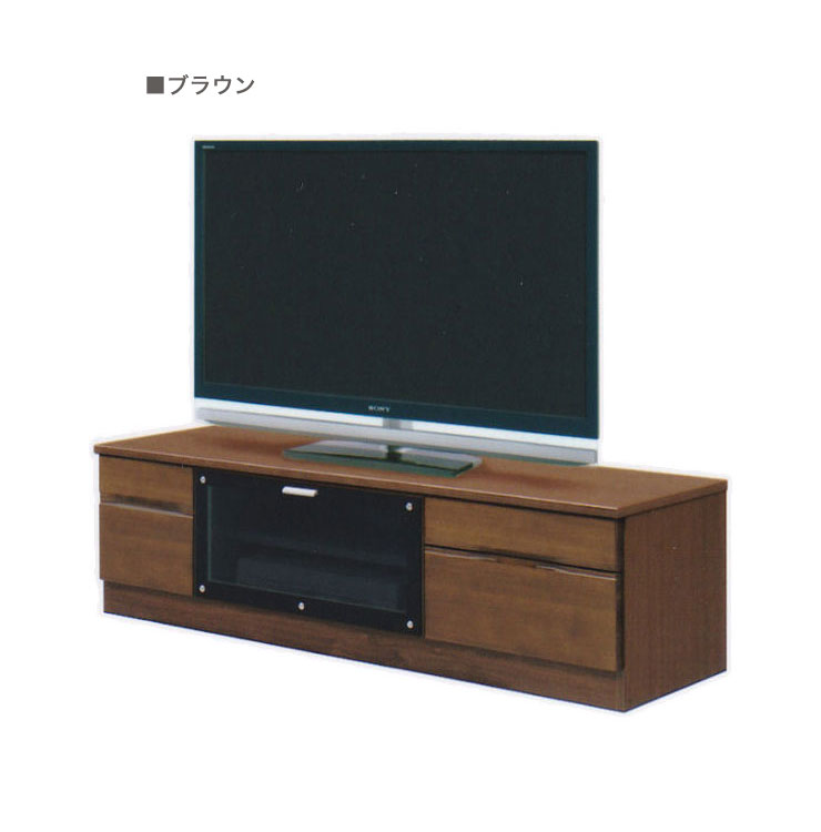 適度に仕切られたオープンスペースが使い勝手の良いAVボード。引出しにはワンポイントとなる象嵌が入り、技術の高さを感じさせます。