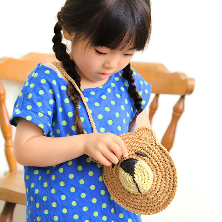 ┣メール便┫/ペーパー細編みクマポシェット/いつもクマと宝物と一緒!可愛すぎるキッズ用ポシェット。/キッズ 14+