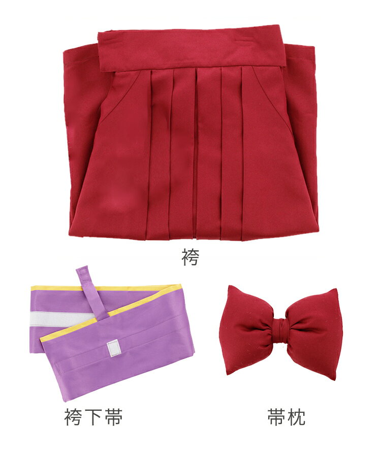ITEM SPEC セット内容 袴下帯・袴(スカート型)・帯枕 サイズ 袴 前ベルト上 スカート丈 前脇ベルト ゴム上がり 前リボン 長さ S(100-110) 60 25 72 M(120-130) 71 27 80 L(140-150) 93 31 94 帯 全長 帯巾 S(100-110) 76 10 M(120-130) 80 11 L(140-150) 92 14 単位(cm) ※このサイズは、メーカー仕様書のサイズを掲載しております。