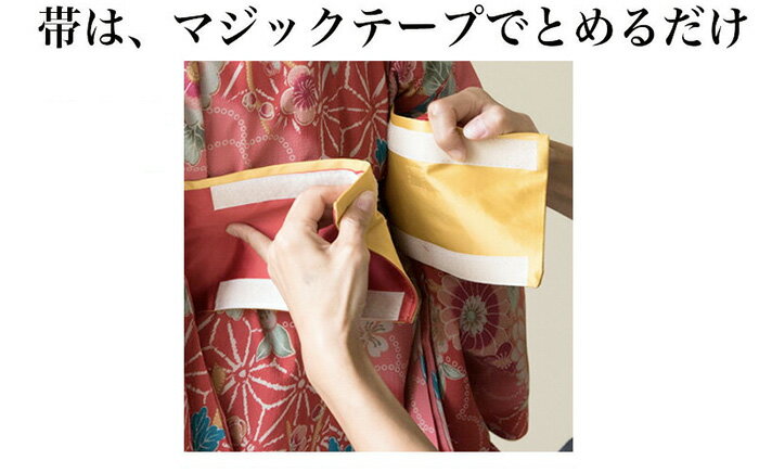 マジックテープやボタンで、 初心者でも簡単に着付けができるすぐれもの。