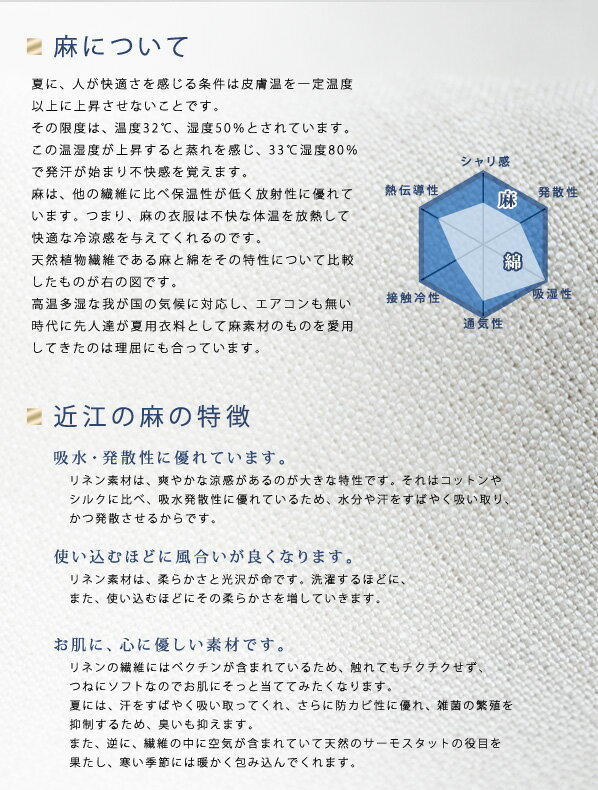 近江の麻は、吸湿発散性に優れ、肌触りが抜群。