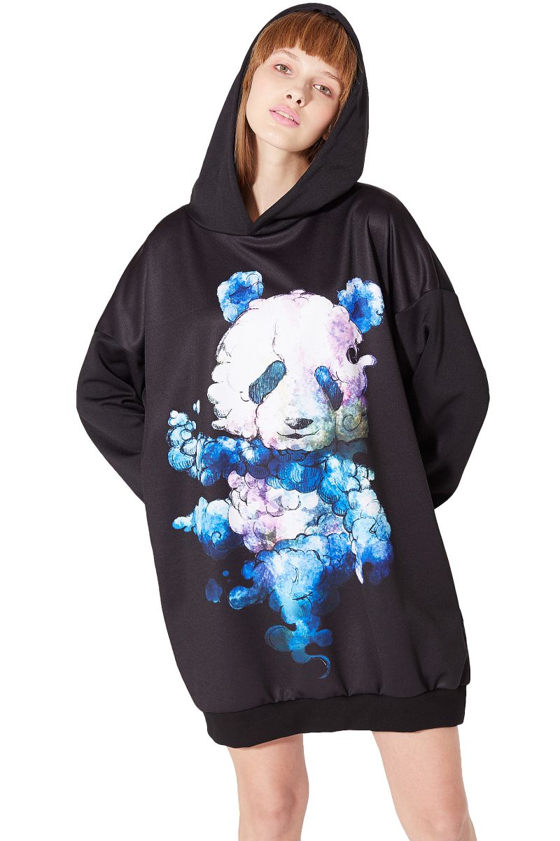 ankoROCK アンコロック パーカー トップス メンズ レディース 原宿系 ユニセックス 服 ブランド 長袖 ビッグシルエット プリント プルオーバー 大きいサイズ ロング丈 ワンピース パンダ ぱんだ もくもく アニマル 動物 水彩 黒 ブラック